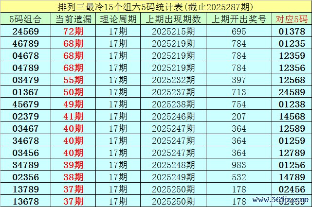 (4)摆设三第2025287期遗漏值最大的十个5码组六组合解冻了0个;